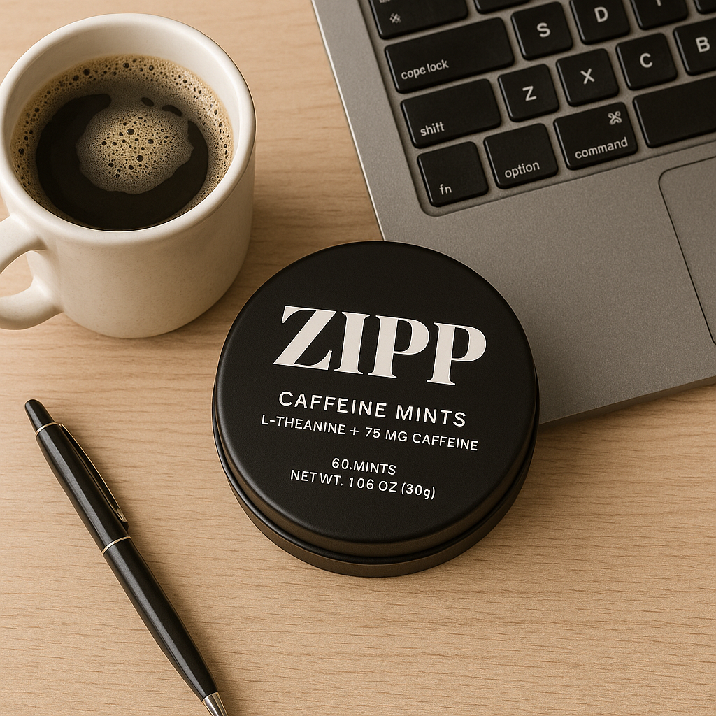 ZIPP is a functional mint that delivers 75mg caffeine + L-theanine for clean, steady focus - without the jitters or crash. It's pocket-sized energy you can take anywhere.